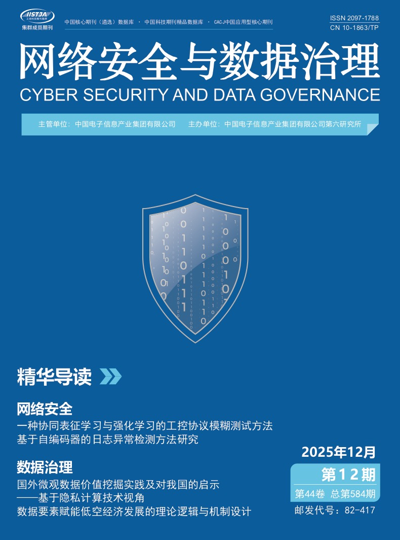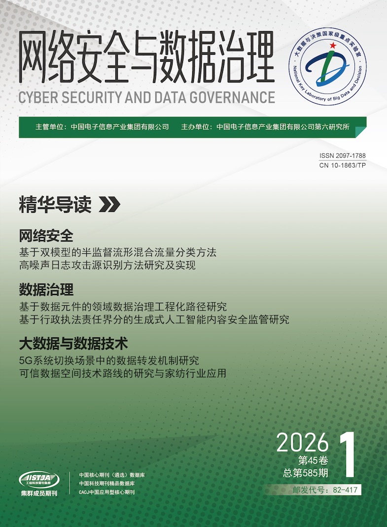 凡《网络安全与数据治理》(原《信息技术与网络安全》)录用的文章,如作者没有关于汇编权、翻译权、印刷权及电子版的复制权、信息网络传播权与发行权等版权的特殊声明,即视作该文章署名作者同意将该文章的汇编权、翻译权、印刷权及电子版的复制权、信息网络传播权与发行权授予本刊,本刊有权授权本刊合作数据库、合作媒体等合作伙伴使用。同时,本刊支付的稿酬已包含上述使用的费用,特此声明。